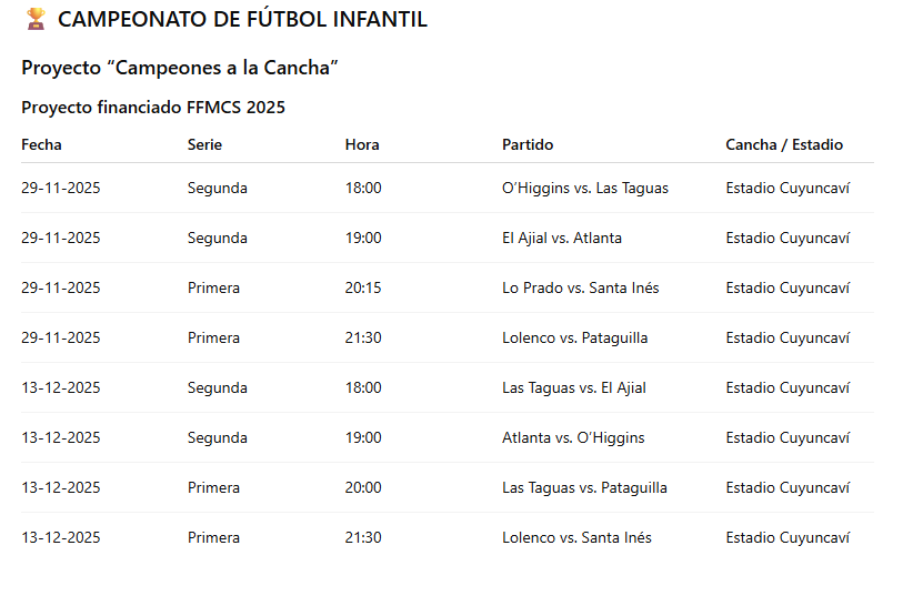 PROGRAMACION PROYECTO CAMPEONAS A LA CANCHA